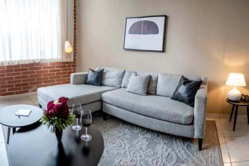 Las suites del hotel están pensadas para que cada estancia sea relajante. Amplios espacios, cama King size, sala de estar, cocineta equipada y televisión de pantalla plana hacen que quedarse en la habitación sea una experiencia cómoda y placentera.