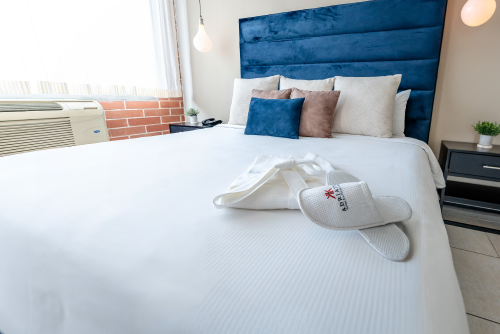 La clave de una buena vacación urbana está en la comodidad. Las suites del hotel están diseñadas para ofrecer esa sensación de hogar lejos de casa: amplios espacios, cocineta equipada, sala de estar, televisión de pantalla plana, aire acondicionado y un baño completo con todas las amenidades necesarias.